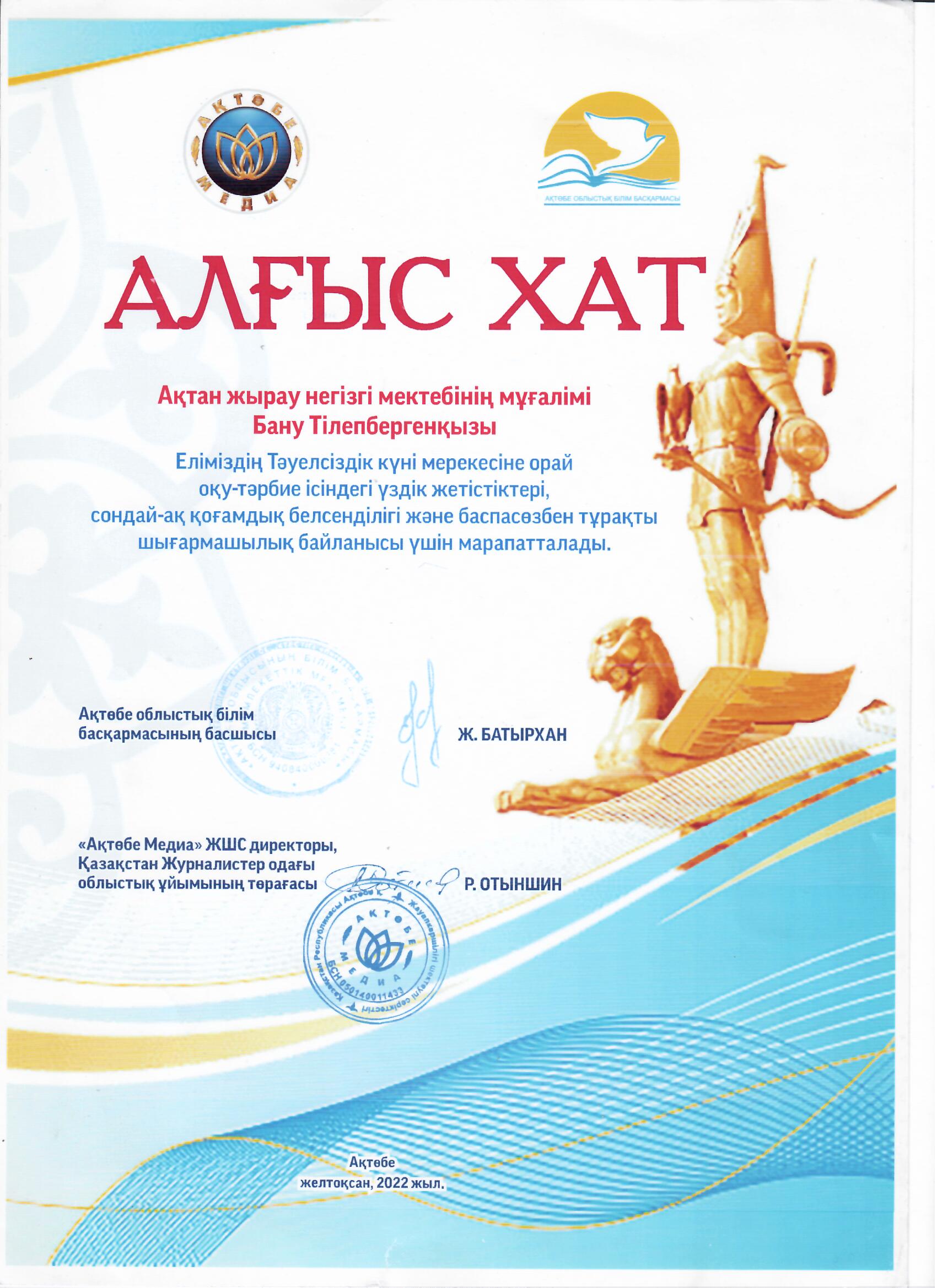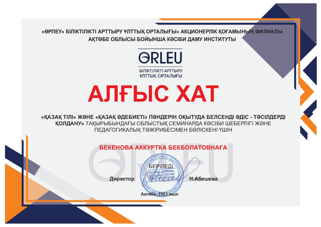 | 1 | 2018-2019 Мұғалім жетістігі | |